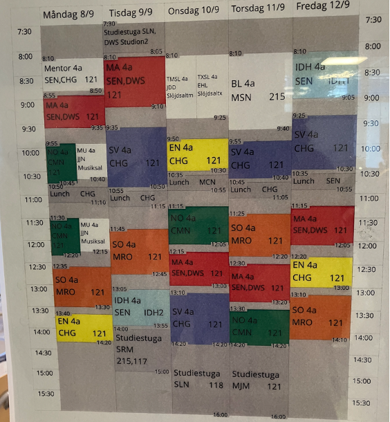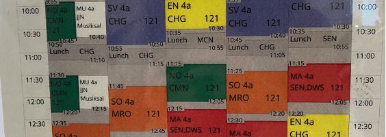Viele Abläufe in der Schule waren zunächst sehr ungewohnt: Es gab keinen Gong und auch keine gemeinsame Hofpause für alle. Wie in Schweden üblich, wurden die Lehrkräfte geduzt (das ist auch in der Arbeitswelt normal, die Hierarchien sind flacher). Die Dauer der einzelnen Stunden variierte erheblich. Die Unterrichtsstunden begannen also erstmal damit, dass die Lehrkräfte an der Tafel notierten, ob jetzt z.B. 40 oder 70 min Unterricht anstehen.